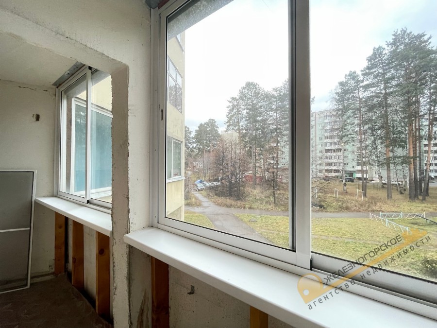 Установлены окна ПВХ, двойная лоджия остеклена современным остеклением, без отделки.